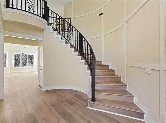Discover this stunning, brand new executive home boasting breathtaking views, sitting on one and a acre lot. Featuring 6 bedrooms, 5 bathrooms, and a 3-car garage, complete with a full in-law suite. A vast covered porch encircles the home, offering ample outdoor living space and a cozy porch swing area. The grand entry foyer is adorned with intricate moldings, soaring ceilings, and immaculate hardwood floors, leading to an open-concept floor plan. The formal living room showcases a coffered ceiling, a fireplace, a spacious dining room, creating an ideal space for entertaining. The kitchen is a modern marvel with a large granite-topped island, farmhouse sink, and state-of-the-art stainless steel appliances, complemented by a built-in desk, a spacious pantry, and a clear view into the family room with its fireplace, custom cabinetry, and bookshelves. A bright breakfast room offers panoramic views of the backyard through expansive windows. Adjacent to the family room, you'll find covered outdoor access to the backyard. The luxurious master bedroom features a fireplace and a spa-like bathroom with a slipper tub, separate marble shower, dual vanity, and a walk-in closet with a custom shelving system. First month, last month and one month security deposit. Minimum one year lease. Longer lease time available