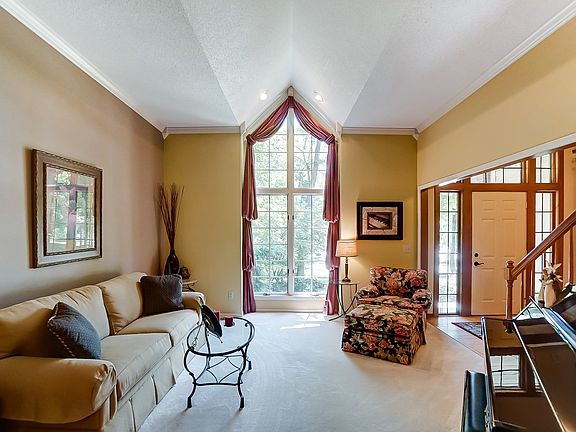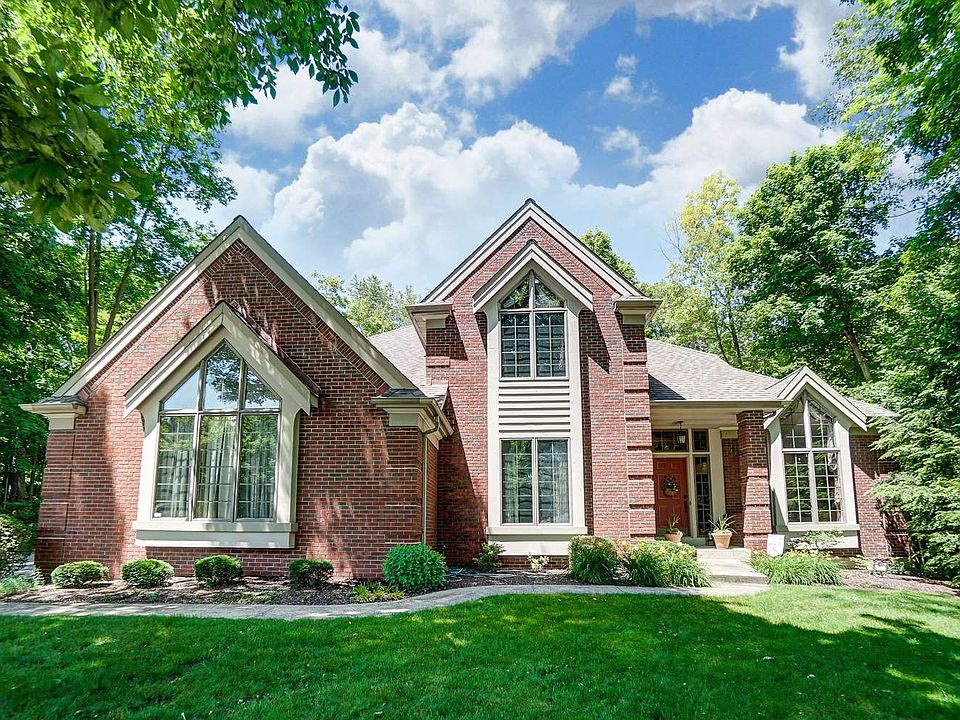 Contingent, accepting back up offers. This home has amazing views and well maintained home!! Private on cul-de-sac with woods behind. Brick front home with lush landscaping and grand entrance. Hardwood flooring, crown molding, impressive care throughout! The kitchen features solid counter tops, lots of cabinets, double oven, pantry with additional storage. Sound system throughout the home. Beautiful beams, built-in entertainment storage and fireplace in the Great room. Magnificent sunroom with skylights, surround sound and splendid view of the woods! It also overlooks the oversized composite deck that presents a built-in gas grill and hot tub. The view is stunning! Den(15X12) with Built-ins and closet could be converted into an additional bedroom if needed. 3 Large bedrooms on the upper level with Primary bedroom being 20x17! Double vanity, tub, updated tile shower and 2 closets. Great space for entertaining in the lower level with wet bar, room for pool table, theater, exercise room and more. This basement seems to go on and go with many possibilities while capturing great back yard view.