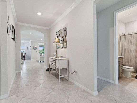 Introducing a splendid embodiment of modern architecture and stylish living - a recently constructed, ranch-style home nestled in the coveted gated community of The Fields. Built in 2020 with unmatched craftsmanship, this home is the epitome of comfort and convenience, positioned a stone's throw away from the extravagant community clubhouse and within proximity of the new Dr. Joaquin Garcia High School. As you step into the 3-bedroom + DEN, 2-bathroom residence, you will be captivated by the fine details. The home is gracefully adorned with large, upgraded tiles and the refined touch of crown molding throughout, displaying an elegant fusion of style and sophistication. A chef's dream, the kitchen is equipped with modern gas appliances, ready to inspire your culinary explorations. A chef's dream, the kitchen is equipped with modern gas appliances, ready to inspire your culinary explorations. The master bathroom is a true retreat, featuring a large walk-in shower, double sink .Enhancing its aesthetic appeal, this home boasts high-quality plantation shutters on every window, providing a timeless appeal while ensuring privacy. This house includes a WHOLE HOUSE GENERATOR ensuring you're never without power, a practical feature that brings additional peace of mind.Step outside to your private sanctuary, an extended screened patio with breathtaking lake views that provide a tranquil. The property is armed with hurricane impact glass throughout, ensuring your safety and comfort even in extreme weather conditions.This impeccable property offers a lifestyle like no other. Experience the exclusivity of living in a gated community, coupled with the charm of a beautifully crafted, modern home that blends practicality with luxury. Whether you are hosting an elegant soiree or enjoying a quiet evening at home, this house it's a place to love. Welcome to your dream home.
