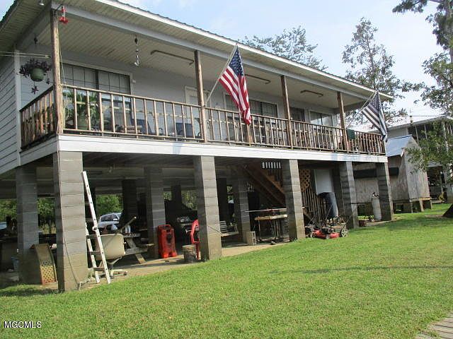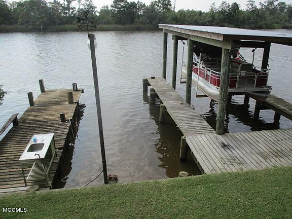 So Blessed ....look at the pictures - 3br/3 baths, open floor plan, recessed lighting, so comfortable with full length deck overlooking Pascagoula River. 110 ft. bulkhead, great pier, boat lift, boat storage cover and Magnificent Oak with a rope for grandchildren swinging into the water. Custom built, 8 ft cement piers, 14 ft,. elevation, Hardy Board siding, metal roof, on 2 lots. Storage and full bath underneath with room for at least 2 cars and ''stuff''.