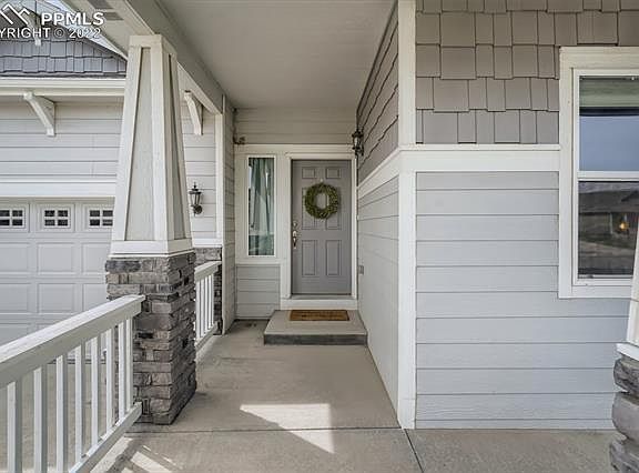 BACK ON THE MARKET - BUYER TERMINATED AT NO FAULT OF SELLER! Welcome Home to this open floor plan 2-Story with charming front porch and fragrant flowering shrubs. This home's special design offers a main level guest bed and full bath in addition to the three bedrooms and two bathrooms upstairs. The hardwood entry with vaulted ceiling leads to the great room and dining area with walk-out to the expanded rear patio and large back yard with privacy fence. The kitchen shines with stainless steel appliances including a gas range/oven, polished granite countertops, spacious pantry, and coffee bar. The counter bar seating provides a more casual dining space in addition to the dining area with warm hardwood floors. Upstairs you'll find the laundry room conveniently located near the bedrooms. The private master suite features two walk-in closets and adjoining 5-pc bath with soaker tub and large shower. The other two upper bedrooms (one with Pikes Peak views!) share a full bath. The huge unfinished basement offers plenty of space for a recreation room and another bedroom and bath if needed. Other special amenities of this home are a 3-car tandem garage, mud room with drop zone for keys and mail, radon mitigation, central air, and great location near hospitals, park, and the Powers corridor shopping and dining.
