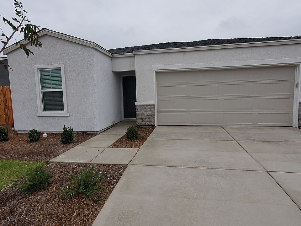 Be the first to live in this brand new 3-bedroom 2 bath home by Lennar. This gorgeous home features wood-look vinyl flooring throughout, with carpet in the bedrooms. The open and spacious floor plan includes a large laundry room with lots of storage. The kitchen has white cabinets and an island. The appliances (stove, oven and built-in microwave) are all stainless-steel. There is a large pantry closet with shelving, plus a coat-closet. The master bedroom has a walk-in closet and a bathroom with double sinks. A solar system will offset your utility bills, especially in summer. Gardening is included to maintain the lovely landscaping, and there's a patio for your backyard barbeques. Patio & landscape will be installed as soon as the rain stops.