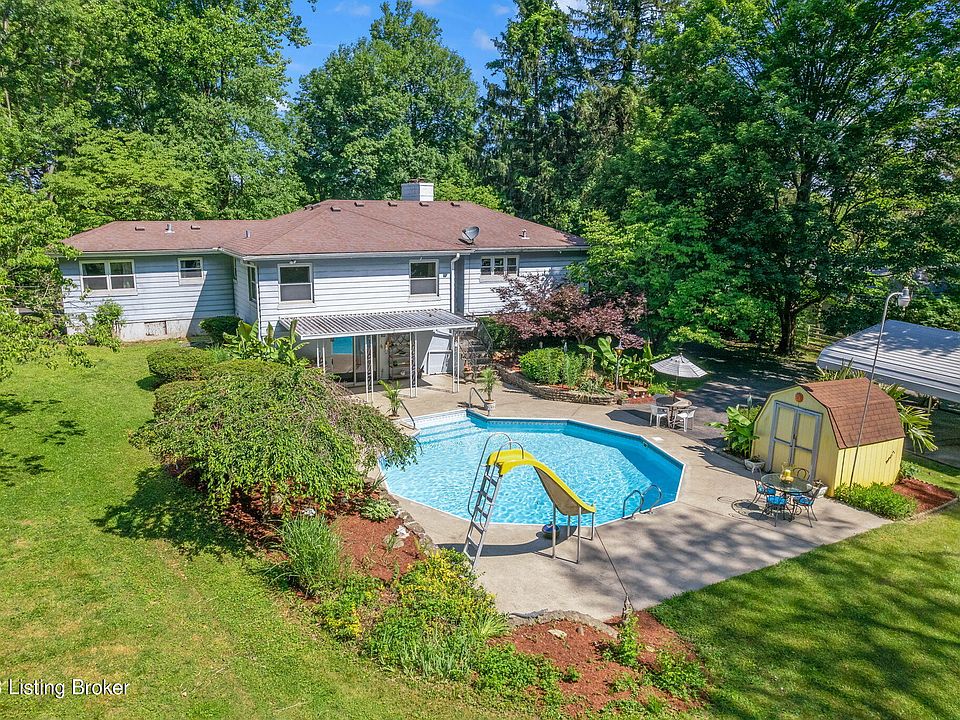 A hidden gem in Jeffersontown this property has 4 bedrooms and 2 full baths with a partially walkout basement.The home sits on a private 1.52 acres with a saltwater pool surrounded by gorgeous trees and landscaping. 2 car carport, 2 sheds for extra storage and a fully fenced in backyard. The seller has made some ideal updates such as a new HVAC and Vapor barrier installed in 2023 as well as a foundation repair by Case with a transferable warranty. Roof is only 10 yrs old and a new fridge was installed in 2022. See it first hand to appreciate all this home has to offer!