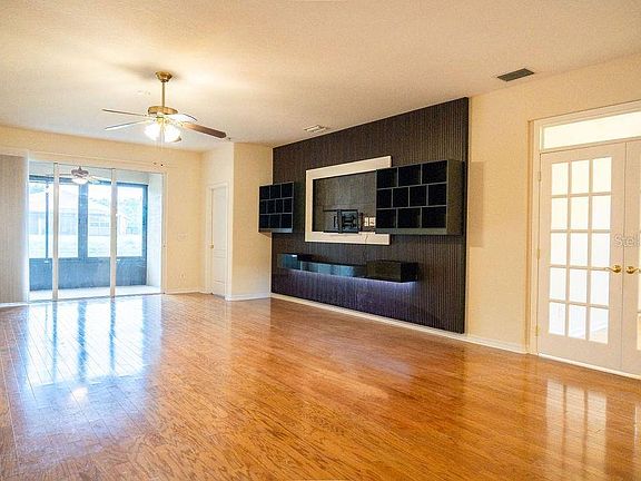 Large villaBonus flex roomOpen layoutScreened covered back patioSpacious living-cum-dining room comboEntertainment wall