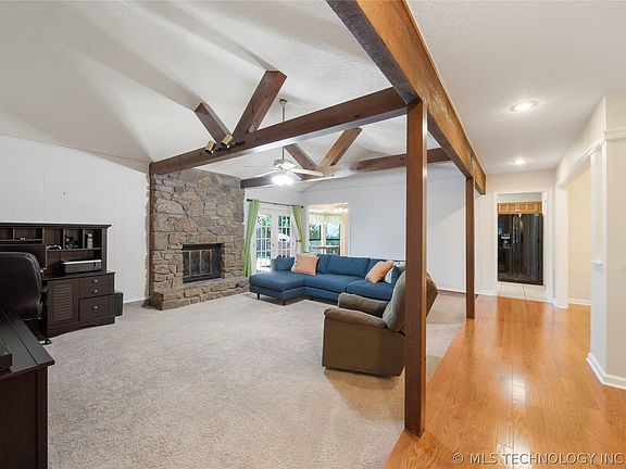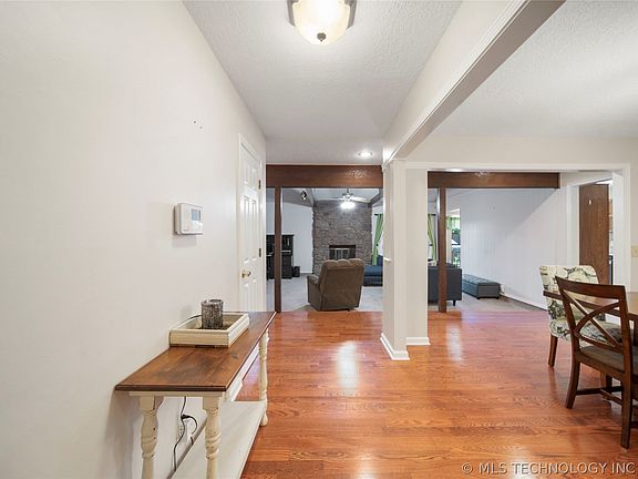 Charming Single Level Ranch w/ 4 Bedrooms in South Country Estates/Bixby North Elementary. Flexible Floorplan w/ Hardwoods, Granite Countertops in Kitchen & Formal Dining that c/b Flex Space or Office. Spacious Vaulted Living Area and a Great Master Bedroom with Walk-In Closet and Nicely Done Walk-In Shower. Home sits on a Large Lot w/ Mature Trees, Covered Porch & Patio, and a Shed for Storage. AC Unit, Furnace, & Hot Water Tank were replaced in 2015. Neighborhood Park and Tennis Courts are nearby.