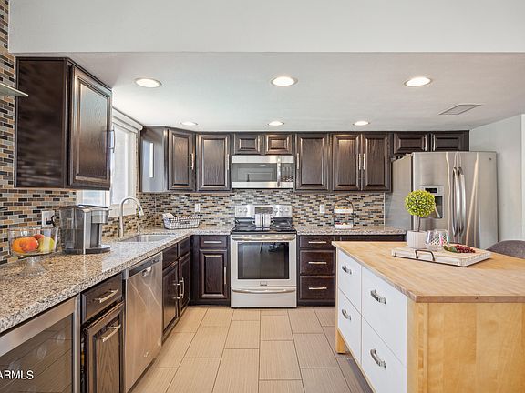 Entertainers Paradise! This stunning 4 bedroom open concept home has updates galore! Flooring is American Hickory Wood and Oversized modern tile! Kitchen and bathrooms have modern backsplash along with stainless steel appliances. 4th bedroom has additional outside entrance and massive walk in closet. Backyard has an awesome ramada and built in firepit. Sparkling diving pool has access from main backyard entrance and master bedroom and backyard is a perfect oasis with generous pavers, artificial turf and plenty of space! This beauty is situated just minutes from Old Town Scottsdale night life, Talking Stick Casino, Top Golf Entertainment, Chapparal Park, Lakes and Aquatic! Home is well maintained and is a steal at this price! Come Quick!