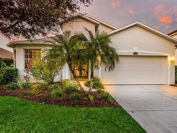 Truly remarkable! Meticulously maintained and desirable open floor plan offering 4 bedrooms and 3 full baths with a peaceful water view. Truly stunning features provide an array of fine details throughout. A welcoming entrance with top of the line engineered hardwood flooring leads to a gorgeous great room with tray ceilings overlooking the extended lanai with lake view. Spacious kitchen with breakfast nook offers plenty of counter space and is equipped with stainless steel appliances, convection oven, pantry, and breakfast bar overlooking the great room. Formal dining room offers ample space for all your dinner parties. Wake up in your exquisite master suite with crown molding to a beautiful lake view. Large master closet and ample master bathroom with garden tub, separate shower, private water closet, and double sinks with granite tops. Three additional bedrooms compliment this house. Two rooms share a jack-n-Jill bath with a fourth bedroom and bath located in a separate private area, perfect for guests! Find tranquility on your overly extended lanai overlooking the serene lake and all that nature has to offer. Resort style luxury living at its finest in the pristine gated golf community of Stoneybrook at Heritage Harbour. Stoneybrook offers an 18-hole golf course (membership not required), two heated pools, fitness center, pickle ball, volleyball, basketball, soccer and baseball field, shuffle board, bocce ball, playground, park, picnic areas, dog park, fishing pier, and activity director!