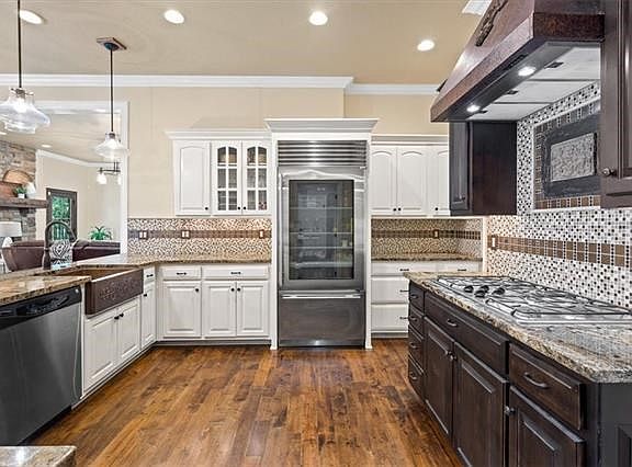 Luxury Colorado Style Living in the Heart of Leawood. Located on one of the most sought after streets in North Leawood this beautiful home features high end finishes and modern amenities including tall ceilings and a spacious and inviting floorplan. Enjoy cooking in the gourmet eat-in kitchen with SS Appliances, double ovens, Sub Zero glass door refrigerator, walk-in pantry, granite counters and abundant storage. The large laundry/mud room just off the kitchen has built in cubbies a boot bench & sink. Butlers pantry/wet bar conveniently located between the kitchen and elegant dining room with fireplace overlooking the beautifully landscaped yard. Enjoy relaxing in the spacious great room with see-through stone fireplace which leads to the finely manicured backyard. You will love entertaining and relaxing on the elegant flagstone patio with a fireplace that will keep you warm well into late fall. The spacious owners suite is located on the main floor with updated bath including a free standing tub, double sinks, large walk-in shower with double shower heads and separate water closet. The upstairs boasts 4 large bedrooms each with two shared bathing areas and personal sinks. All bedrooms have abundant storage and large closets. Second laundry area located on second floor. You will enjoy movie nights in the finished lower level which has a wet bar/kitchenette and half bath. Don't leave without seeing the extra space located off the garage with french doors leading to the well manicured backyard, a half split AC/Heater unit and large workbench or bar area. Additional features include a main floor office, in-ground sprinklers, whole house generator, whole house water filter, tankless water heater, plantation shutters and so much more! 2021-08-13