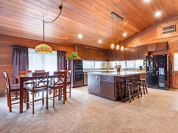 ONE OF A KIND Custom home with GUEST HOUSE located on over 6 acres! Private drive leading to a beautiful serene setting. Bright & open floor plan with soaring vaulted ceilings, cozy pellet stove, wood stove & wood accents throughout. Wonderful kitchen featuring a large center island & a built in double oven. Spacious pantry and laundry. Multiple outbuildings. Relax on the NEW deck!