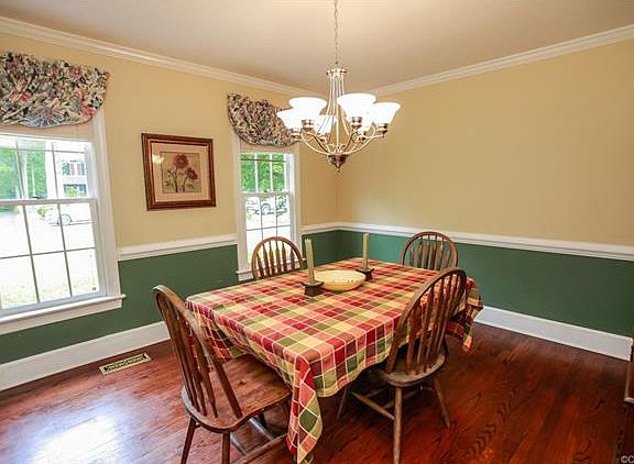 Back on market due to no fault of seller! Spacious 4 bedroom Colonial on a park-like level lot in quiet North Chesterfield neighborhood. Dimensional shingled roof and siding approximately 3 years young and newly installed maintenance free vinyl porch rails. Huge family room with new carpet, skylights, wood stove insert, vaulted ceiling and beautiful, dark stained wainscoting. Large 16 x 14 rear deck is perfect for outdoor entertaining. Formal Living & Dining rooms with lovely, dark stain hardwood floors, eat in kitchen, hanging pot rack, pantry and lots of storage. Generously sized Master bedroom with 2 walk in closets, conveniently located second floor laundry, whole house fan. Kitchen refrigerator, washer & dryer convey.