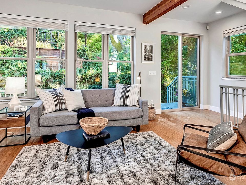 Leschi, known for being quiet, peaceful, and beautiful. This townhome is all that and more. Walkable and close to transit, including the future Judkins light rail station. The primary suite sits on its own floor with ample closet space, vaulted ceilings, skylights and an office space with views of downtown Seattle and the Olympics. Two large bedrooms on the lower floor, one enjoying a calming outdoor water feature. The kitchen has been updated with brand new appliances which opens to the living and dining areas. Living room has built-in speakers and a gas fireplace. Just steps off the main floor is the garden space and entertainers patio which stays cool on the warmest days. Attached two car garage is big enough for large SUV's. No HOA!