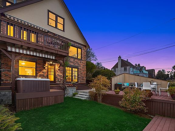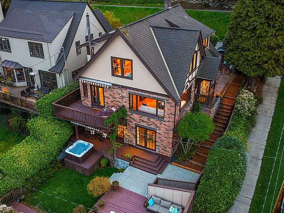 Positioned on a coveted corner lot, this much-loved home embodies timeless elegance and character, overlooking Madrona Ravine with spectacular views from all levels. Exquisite all-new kitchen with custom sapele cabinets, Caesarstone counters, Sonoma subway tile, Wolf induction range, Sub-Zero fridge, and Italian floor tiles. Easy level entry from a front yard patio. Oak hardwoods, leaded glass, and view deck off adjoining living and family rooms. Three bedrooms up with continental bath, large walk-in closet, and cozy reading nook. Spacious media room, second kitchen, bedroom, and new bath on the lower level—perfect for guests or potential MIL unit. Private backyard with hot tub and sunny deck with views for miles. A truly exceptional home.
