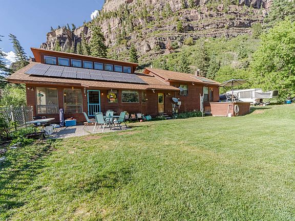 Large Ouray home on an extra large lot. Nice views from the sunny private yard. 4 bedrooms, 3 baths, 3 car garage, 2,676 square foot home, large laundry/mud room. Master bedroom has his and hers closets and it's own entry. Nice wood ceiling details in the open spacious floorplan living and dining rooms. Solar panels take advantage of our 300 days of sunshine each year. Walk to everything in town - hot springs, shopping, and hiking trails. Make this wonderful home yours today.