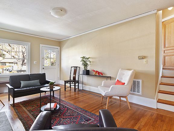 Light and bright, this classic Berkeley bungalow offers warm comfortable living spaces and an updated eat-in kitchen with vintage wood-built-in. Enjoy entertaining on the deck that overlooks a pleasant backyard with a gazebo and pear, apple and fig trees. With two bedrooms on one level and another bedroom on the main level, the home offers great flexibility of use. If you want convenience this is it, only a few blocks to all the popular shops and restaurants on 4th Street, the FS express bus to San Francisco and the freeway.