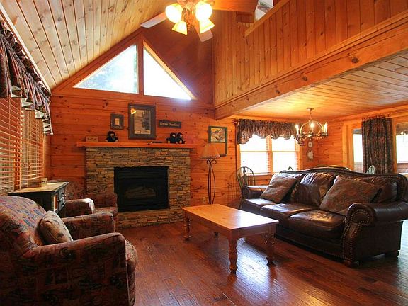 "Linger Longer" is a lovely 4/4 log cabin that can sleep 8 to 10 guests. As you enter the main level, you will find the living area with a gas fireplace along with the kitchen, dining room and bedroom. As you find your way to the lower level, you will enter another living/rec room area with a gas fireplace, and another bedroom. The upper level features the 2 remaining bedrooms and 2 baths. Each bedroom has its own private full bath. You may have already noticed that you want to "linger longer", so step out onto the screened porch and relax in the hot tub or have a seat on a rocker on the 2 open porches. The 3-level interior is tastefully decorated and has a mix of wood paneling and drywall -for those of you who do not like an all-wood monotonous interior. This cabin will be great as second home, or as an income-producing overnight rental. This cabin is located in a gated community, which also includes the East pool complex, the Lodge conference center, walking trails, fishing ponds, picnic pavilions, and the Overlook gazebo, with its fantastic views of the Smokies. Less than 1 mile off the Parkway, it offers easy access to Pigeon Forge, Gatlinburg & Sevierville, including outlet malls, restaurants, Dollywood, and many other attractions as well as the Great Smoky Mountains National Park. Call the listing office to schedule a showing today!
