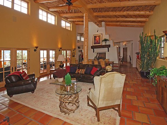 Near the charming resort town of South Fork, in the exclusive South Fork Ranches, this contemporary southwest home overlooks the 17th tee box of The Rio Grande Golf Course, and is across the paved road from 1.8 million acres of the Rio Grande National Forest. It has 3 bedrooms, 5 baths and 5600 sq ft of living space.*AMAZING VIEWS OF DEL NORTE PEAK AND THE VALLEY BELOW*ENJOY EVERY SUNRISE*TWO MASTERS WITH ONE OF THEM ON THE MAIN FLOOR*LOG POSTS AND LOG BEAMS*EIGHTEEN FOOT HIGH CEILINGS*CLERESTORY WINDOWS*SALTILLO TILES*LATILLA STICK CEILING*CUSTOM MADE INTERIOR DOORS*ITALIAN RED FIRE GRANITE*TURKISH TRAVERTINE*WIDE PLANK PINE FLOORING*CIRCULAR PEBBLE-FACED SHOWER*BRICK PAVED COVERED TERRACE WITH SKYLIGHTS AND FIREPLACE*CONVERT STUDIO INTO REC ROOM OR MOTHER-IN-LAW QUARTERS*OVER 40 ASPEN TREES*SOLAR HEATED RADIANT FLOOR HEATING WITH THIRTEEN ZONES*50-YEAR METAL ROOF*SPRINKLER SYSTEM*BURIED PROPANE TANK*PELLA METAL CLAD WOOD WINDOWS*SPLIT PAVER BRICK PORCHES & TERRACES*INTERCOMS*TWO LOTS