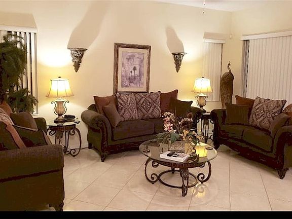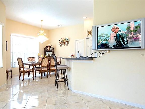 This lovely fully furnished 5 Bedroom 3.5 Bathroom home has an open floor plan with high vaulted ceilings. There is a spacious well-equipped kitchen. The lovely first floor master bedroom has a king-size bed with an en-suite bathroom which includes a large bathtub, separate shower with tiled seat. On the second floor you have an elegantly furnished master bedroom with an en-suite bathroom. The third bedroom is furnished with a queen bed and upgraded furniture and luxuries. The remaining two bedrooms have twin beds for the little ones. The villa has a game room, beautiful private pool area with spa which are perfect for taking a day off from the parks and enjoying some family fun! The pool has the feature of a safety fence. This villa has a perfect location conveniently located near the theme parks, restaurants and supermarket. This is a perfect location for your next short term rental, vacation home or full-time residence.