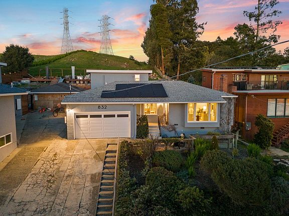 Welcome to 832 Craft Ave, a beautifully updated 3-bedroom, 2-bathroom home in the coveted El Cerrito Hills, seamlessly blending modern upgrades with everyday comfort. Enjoy stunning views of Mt. Tamalpais, Alcatraz, the Bay Bridge, and the San Francisco skyline from the light-filled living room, featuring a wood-burning fireplace and a large picture window that perfectly frames the breathtaking vistas. The newly remodeled kitchen dazzles with quartz waterfall counters, stainless appliances, custom cabinetry, and a skylight that bathes the space in natural light. Sustainability and convenience converge with a fully installed solar energy system, Tesla Powerwall backup batteries, an EV charging station, and an electric heat pump. The spacious family room opens to a tranquil backyard, ideal for entertaining, relaxing, or creating your own oasis. The upstairs primary suite offers a private deck for morning coffee or evening stargazing. Additional highlights include a versatile loft, luxury vinyl plank flooring, designer paint, stylish lighting fixtures, a two-car garage, and zoning for the highly regarded Kensington Hilltop School. Located near scenic walking and biking trails, this home perfectly combines thoughtful upgrades, energy-efficient features, and an unbeatable location.