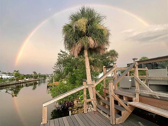 ALSO AVAIL FOR LEASE MTM. WATERFRONT HOME TO GULF. NO FLOOD/DAMAGE FROM HURRICANES. FULLY FURNISHED HOME. 4 POINT & WIND MITIGATION JUST PASSED. Have copy of inspection report for use. Welcome to this inviting home located in Englewood, FL. This property features a spacious layout with ample natural light and a comfortable living area. The kitchen is well-equipped and appropriate for preparing meals and entertaining as it features an open layout with the 10 person dining room table in the beautiful sunroom overlooking the water and large fenced in backyard. Enjoy the lanai space with shaded screens and adjustable covered windows to block the rain and keep the space cool. The lanai also offers a wood fired fire pit with ventilation immediately out the roof. Garden in the homemade Garden bed or hop in the outdoor shower after boating, paddle boarding, or tanning on the dock. Most large boats can fit under the Bridges so long as the tee top is down. Conveniently situated across from Publix, Winn Dixie, CVS, and near historic Dearborn, Boca Grande, Stump Pass, and Lemon Bay. JUST 5 MINUTES from Manasta key and surrounded by dog parks, trails and amazing restaurants on or off the water. This home offers a wonderful opportunity to enjoy all that the area has to accord.