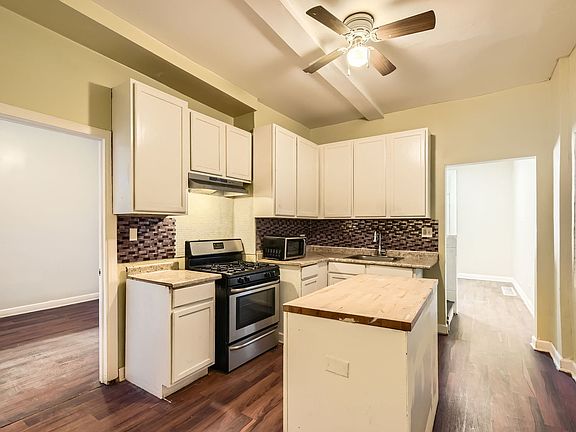 4 bed, 2 bath home ready for you to move right in. Big kitchen with white cabinets and butcher block island, stainless oven and refrigerator. 1 bed, 1 bath on main level. Upstairs has 3 similar-sized bedrooms with terrific light and 1 bath. Big backyard and a gated parking pad with room for 2 to 3 cars. Full basement for excellent storage and a separate room that could be an office or game room. Gas forced heating. Located one block south of 87th street and all its restaurants and shops. Two blocks to the 87th St. Metra. 1 block to the Cottage Grove CTA bus. 1 block to beautiful Lorraine Dixon Park!