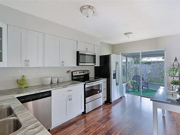 A truly must see! Beautiful remodel. Spacious floor plan. Light and bright. Abundant storage. Hard to find, 1 car garage with laundry hook ups. Use for car, hobbies, storage. Screen room for year round enjoyment. Many new features to include all cabinetry, granite counters kitchen and bath, stainless appliance package, beautiful laminate flooring, designer tile in bath. Community features clubhouse, pool and recreational activities. Plenty of additional owner/guest parking available as well. Close to downtown Dunedin and the bike trail. Very convenient to medical and shopping as well. Preview today. What's not to love! Monthly fees total $336.30 ( Land lease $94.94 and monthly fee $241.36) New roof 2018.