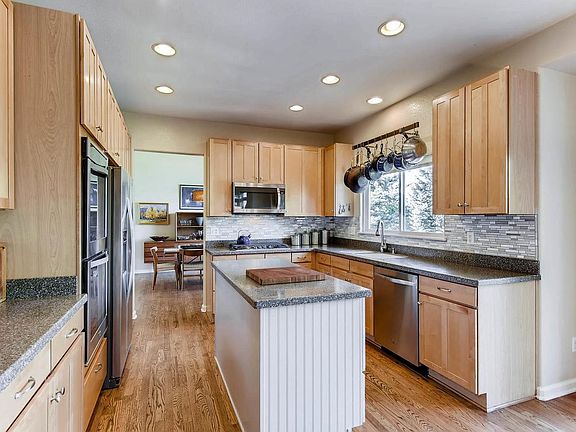 Beautiful, updated, sunny home in coveted Rock Creek. Enjoy a view from most every window of open space, gardens, & mountain sunsets. Bk yard is peaceful and private. Gmt kitchen has maple cabinets, SS appliances, double oven. 4 bdr upstairs, new carpet and lrg master suite w/ vaulted ceiling and lux 5-piece bath. Main lvl open floor plan with hardwood throughout, vaulted ceilings, and custom fireplace. Finished wlkout basement with studio, great room, and bath. Superior Elementary blocks away.
