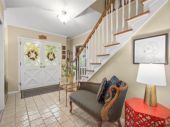Classic colonial style raised ranch in desired VA Manor neighborhood. Open floor plan & serene private views. Winding stone retaining walls/brick pathway/striking green dbl doors all leading to bright & welcoming entry. Main level boasts sunfilled rooms & open feel. Expansive LR w/overszd windows highlighting orig features-light hw, delicate crown mldg, gorgeous gas frpl w/marble surround. HW continue into DR w/4' opening to LR, beautiful woodwork & quaint glass door w/sidelites. Updated kit was completely reconfigured creating a sunny chef friendly space w/crisp white cabs, custom isle perfectly positioned within walk in bay & corner glass door. Primary suite w/newer hw, bowed window nook flanked by blt ins, two 8x5 clsts & massive ensuite (15x8). 2 addl main lvl br w/ great clsts & hw. Spacious lower level boasts - 4th bedroom & full bath plus FR w/wet bar, frpl & 6' wdw. Amazing outdoor space - huge brick patio w/cov'd area off kit & DR, 2nd patio off heated inground pool