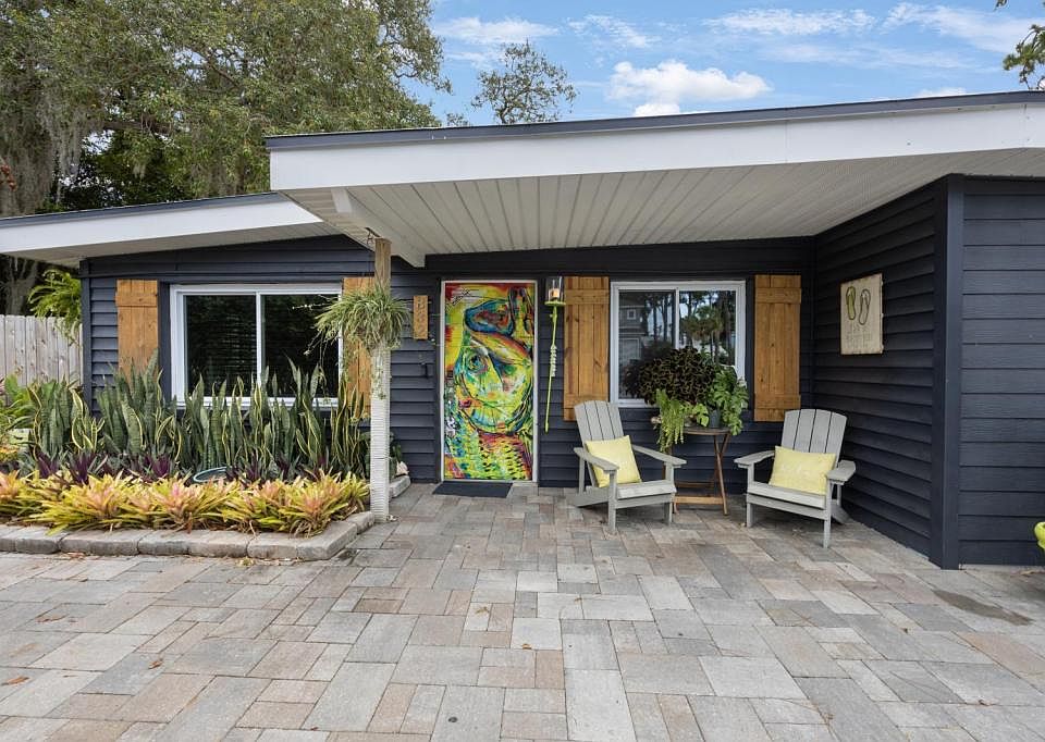 Available November 11th, 2025. Lawn trimming included. This unbelievable beach-vibe home is a 3 bedroom, 2 bath home, on a double lot in downtown Palm Harbor! The Pinellas Trail is right around the corner. All of the fantastic downtown Palm Harbor Restaurants and Bars, too. Pop Stansell Park and the community boat ramp is a minute walk away. You will be in the heart of the quaint downtown Palm Harbor! Restaurants and Bars abound! There is Kayak rental close by. The home has a Tesla Wall Connector fast charger, a super cool tiki bar, a relaxing fire pit hangout, a pickle ball court and b-ball hoop.