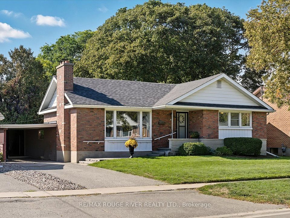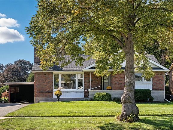 Welcome to this Adorable 2-bdrm bungalow nestled on a beautiful tree-lined street in one of Oshawa's most desirable areas. With Great curb appeal, the home is ideal for first-time buyers, downsizers, or investors. Beautiful Large West Facing Backyard, great for gardening or family fun. Inside, you'll find a freshly painted interior that blends modern updates with original charm. The open concept spacious living and dining room features hardwood floors, a cozy wood-burning fireplace(as-is), large front window that fills the space with natural light. Front closet w/sliding barn door. The kitchen offers solid wood cupboards, open sightlines to the living/dining room, and a window overlooking the private backyard-perfect for entertaining or relaxing. Both bedrooms are generously sized with hardwood floors, double closets and bright windows. The primary bedroom boast a large front facing window, while the 2nd bedroom overlooks the backyard. The 4-piece bathroom has been refreshed with a new bath surround. The basement offers excellent potential with separate entrance, good sized windows, and plenty of room to create an in-law suite or additional living space for family. Outside, enjoy a private backyard with patio and garden shed. Convenient carport for 1 car and 2 car driveway parking. Roof 2021, Furnace 2016, A/C 2024. This Gem is located within walking distance to schools, shops, transit, place of worship and all amenities, location can't be beat, wonderful neighbors.