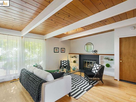 Definitely worth seeing! Level in to all level living. This 1960's home is a classic example of mid-century design. A truly unique property on almost a 1/2 acre +/-, that backs up to regional park lands. Spectacular views of oak studded rolling hills dotted with grazing cattle. This rare site is ideal for the urban farmer or avid gardener. In addition there is a finished outbuilding with electricity, perfect for artist, hobbyist or office, it is great versatile space. Trail access to Kensington Hilltop School, Arlington Park and Wildcat Canyon within a block. Close proximity to Berkeley, 580 & 880. TransBay and BART direct bus stop are at Arlington and Terrace minutes to Suburbia yet uniquely rural!