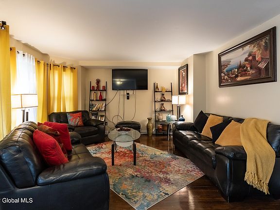 Kitchen beautiful and curb appeal galore are the hallmarks of this remodeled Schenectady single family. A total of 1,716 sq ft w/ 3 bedrooms & 2 full bathrooms. Exterior is super inviting w/ bay windows, custom front door, covered front porch & architectural touches. Inside, the chef's kitchen is the hub for cooking & entertaining. Center island w/ cooktop, breakfast bar, stainless appliances inc. dishwasher, range hood, herringbone tile floors. Remodeled bathrooms, new vanity, walk-in shower. Laundry in basement, level lot yields fenced rear yard and owned solar panels. This move-in home has been smartly & stylishly prepared for its new owners!
