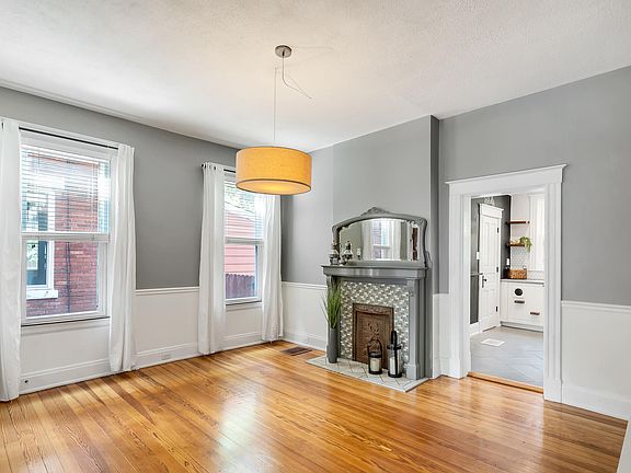 Spacious Italianate brick home located in the desirable East Row District of booming Newport! This wonderful home offers hardwood floors, nostalgic fireplaces, and Large Rooms throughout with high ceilings. The newly renovated kitchen features custom cabinets, granite countertops, farmhouse sink and island with seating. The new owners will love the charming, fenced backyard with mature perennials and covered patio. The massive two car detached garage provides great off-street parking and additional storage. Great opportunity to live walking distance from parks, shops and restaurants.