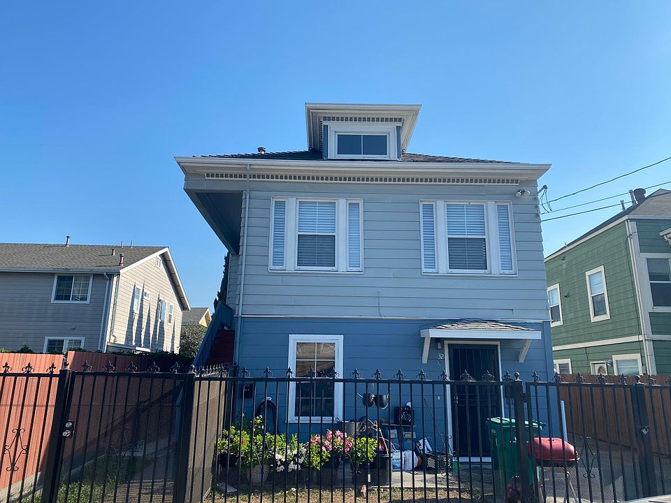 Recently remodeled 2 bedroom 2 full bath unit. Includes 1 spacious remodeled closet and 1 walk in closet. Includes gated front yard plus 1 back balcony. Unit has wooden floors, quartz counter top kitchen and a hook up for washer and dryer. Close to Bart and 880 freeway entrance, and 15 miles from San Francisco. Owner pays garbage (only). No pets, or smoking. One car parking inside gate.