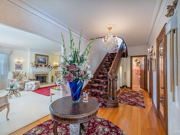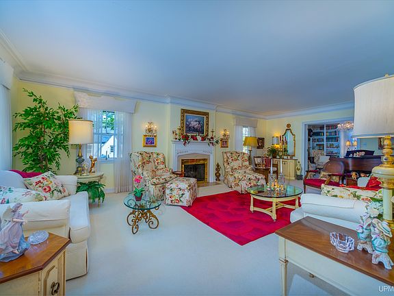 Every home tells a story, but this 3 bedroom/4 bath 2-story in Ishpeming speaks to HISTORY. Built in 1943 by Sam Cohodas, one of the UP's most successful & philanthropic entrepreneurs. Sam hired expert craftsmen and his commitment to quality reached as far as Belgium for the exterior stone. From custom plaster crown moulding to tuck pointing the chimney, every detail was built to last. The current owners, faithful to the period and integrity of an historic home, have impeccably preserved the character and charm. You'll sense it from the moment you open the handcrafted solid wood front door. If you've a penchant for entertaining, imagine greeting guests in the formal entry with curved staircase and polished wood floors. To the left, the broad living room offers multiple sitting areas anchored by a gas fireplace. Beyond the Grand Piano is the library, a tranquil spot to read, gather for conversation and enjoy the ambiance of another fireplace. The formal dining room also sparkles; flooded by day with sun and after dark by the shimmer of a dazzling chandelier. A butler's pantry leads to the immaculate kitchen, with an eat-in banquette lit by another chandelier. In fact, 6 crystal chandeliers hang throughout this home, including in the 22x12 covered back patio. Upstairs a huge master bedroom spans the west side. The south facing turret window fills the main bath with natural light. 2 more bedrooms plus full bath along with spacious closets fill the upper level. Attic access provides 745 more square feet for storage. The lower level features office, workshop, laundry & cozy family room with stone-faced fireplace. 4000+ square feet designed with places--inside & out--to relax as well as circle with family & friends. The private and fenced back yard welcomes summer visitors with meticulously landscaped gardens complete with a fountain. Make a date to see this one-of-a-kind historic home today.