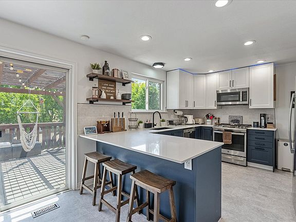 Fenced backyardFinished temperature-controlled garageLarge deckPatio seatingDedicated officeRemodeled kitchenStainless steel appliances