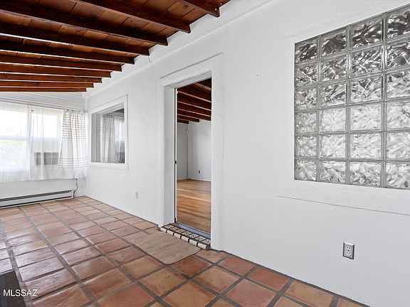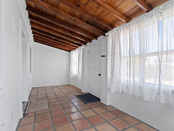 If you're looking for a home with character and charm, you've found it! This Spanish Mission style home features owned solar, water harvesting, and newer windows to keep utility bills low. An Arizona room with saltillo tile welcomes you. Inside you'll find gorgeous bamboo floors, wood beam ceilings in the living room and bedrooms, and a bright and cozy kitchen. The primary bedroom features a closet with a built-in organization system and patio access. The large front yard is perfect for a fire pit and the covered back patio is a great spot for your morning coffee or a weekend barbecue. Storage room in rear of home has electric and work bench for the tinkerer. Great central location close to shopping & restaurants and less than 5 miles to U of A. A true Arizona home!