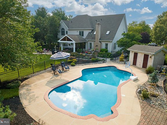 Welcome to 832 Palomino Drive! With 4 bedrooms and 4 1/2 baths nestled in the desirable Hidden Forest community of Collegeville, this is a dream home with 4,586 interior square feet of living space. Look outside your window and see mature trees, extensive landscaping, and perhaps even a neighbor taking a walk. The fenced-in backyard adjoins Evansburg State Park, so don't be surprised when rabbits, foxes, birds, and other wildlife that inhabit the park wander onto your property. It doesn't get much more idyllic. There are many upgrades and impressive design choices that make this home truly spectacular. The custom front door may be the first thing to catch your eye, but certainly won't be the last! Gorgeous 5 1/4" plank hardwood flooring runs through the foyer, home office, living room, and dining room. Just left of the main entrance sits the home office complete with French doors. The kitchen has been completely remodeled with natural cherry cabinetry, limestone flooring, granite countertops, a tile backsplash, and stainless steel appliances. The great room has a vaulted ceiling, skylights, and a beautiful floor-to-ceiling stone fireplace. Upstairs, the owner's suite bathroom has been transformed into a spa-like retreat with a soaking tub, a free-standing tiled shower, wood cabinetry, granite countertops, and a chandelier. The finished basement is the perfect place to entertain with features like a wet bar, pool room, media room, and even a workout area. Aside from an attractive layout, the finishing touches made throughout this home are what elevate it to something truly special such as custom molding, tasteful lighting fixtures, iron staircase balusters, and custom curtains. Not a detail was overlooked when creating this home- even the 3-car oversized garage features custom-built cabinets and the home is wired for a generator. The property is nearly an acre with a showstopping backyard, and just like the rest of 832 Palomino Dr., not an expense was spared. There is a professionally hardscaped covered patio with a cedar tongue and groove ceiling, stacked stone walls, and a stacked stone fire pit. With a few space heaters, you can enjoy this beautiful outdoor environment throughout the fall and spring seasons. This entertainment area adjoins the pool, complete with a propane heater. Additionally, there is a pool house with a full bathroom and on-demand hot water. Living here encourages one to pursue an active outdoor lifestyle. Whether it's swimming, hiking at Evansburg State Park, biking along one of the nearby paths, horseback riding at Red Buffalo Ranch (3 mins away), hosting an outdoor movie night, or simply enjoying the beauty and serenity of your backyard, your life will be enriched by the many ways that you will enjoy this unique home. Located in the highly regarded Perkiomen Valley school district, within minutes of Skippack Village with all its unique shops and dining options, Providence Town Center, Rts. 422 and I-476. There is no place like home and certainly no place like 832 Palomino Drive.