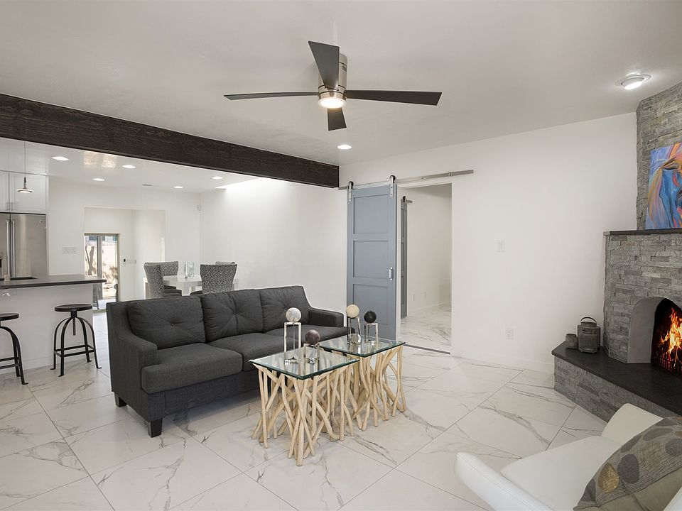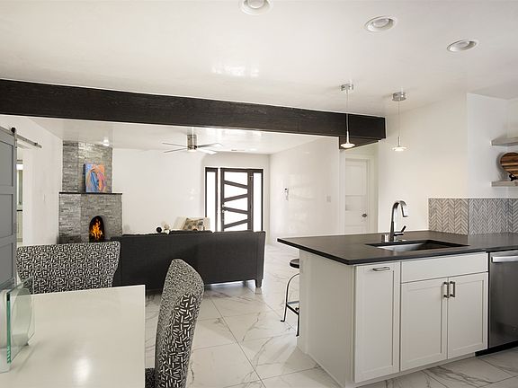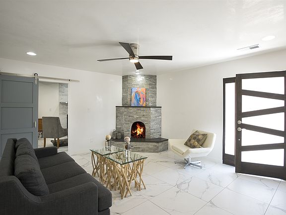 Stunning is an understatement, this home is simply beautiful. Located in the coveted neighborhood of Casa Solana just minutes away from the Historic Plaza of Santa Fe, this single level home has just undergone a total transformation. Almost completely remodeled, this three bedroom three bathroom home sits on almost a quarter acre corner lot with a large back yard, custom iron gates, mature fruit trees and grape vines. Upon entering the house you are greeted by a gorgeous stone kiva fireplace and living room area connected to a completely remodel contemporary kitchen with NEW appliances and cabinetry. Beyond the kitchen is an awesome additional room with many possibilities...bar, sunroom, lounging room, you decide! It includes more brand new cabinets, floating shelves, a small beverage refrigerator and large sliding glass doors that invite the outdoors in . This house has 2 master suites... the first suite has a private sitting room with its own fireplace connected to a bedroom with access to the backyard and 3/4 bathroom closet combo with custom iron doors.. The second master bedroom suite has a 3/4 bathroom and access to a outdoor private deck! This contemporary remodel includes Venetian plaster, new flooring, new doors, new windows, new cabinets, new bathroom and light fixtures! In addition to all the interior updates, the home has a new roof and a new heating and refrigerated air-cooling system! Easy to show and move in ready, schedule your showing today!
