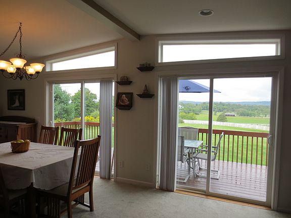 This exceptionally maintained unique style Ranch home has views that are must see. Large kitchen with stainless appliances and breakfast counter. Formal dining room that looks out over the gorgeous views that leads to generously sized deck to enjoy these views daily. Master has walk-in closet and full master bath. Nice size second and third bedrooms and main bath. Extra large family room on first level with the convenience of a half bath. Home Warranty for buyers. Come and experience the truly breathless views of Sugar Maple Horse Farm.