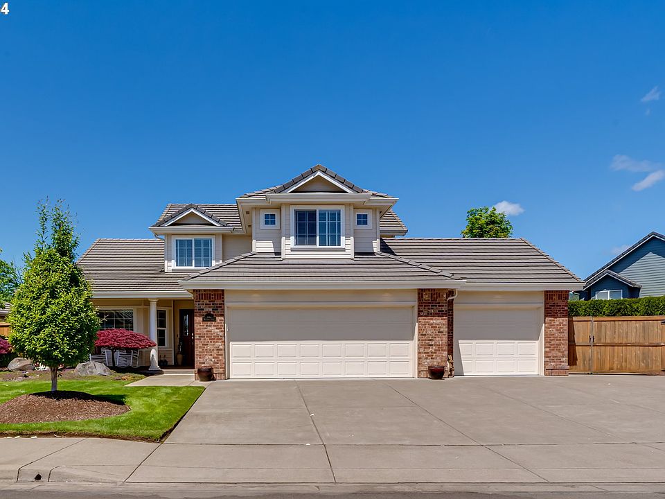 Beautiful four-bedroom, custom contemporary in the coveted River Glen neighborhood! A charming, covered porch greets you upon your arrival. The open and airy living room features vaulted ceilings and a gas fireplace. The adjacent kitchen includes all appliances, gas cooking, maple cabinets and soft-close drawers. The kitchen & dining room have gorgeous hand-scraped hardwood floors. A main-level primary bedroom suite features an ample walk-in closet, lovely bathroom with walk-in closet, and patio access. Beautifully landscaped backyard designed to create a private outdoor setting. It offers a large patio, a fire pit, a garden shed and newer fencing. Three-car garage, plus gated RV parking. Plumbed and wired for a hot tub on the patio by the primary bedroom suite. Gas forced air heat, plus central air. Don't miss out!