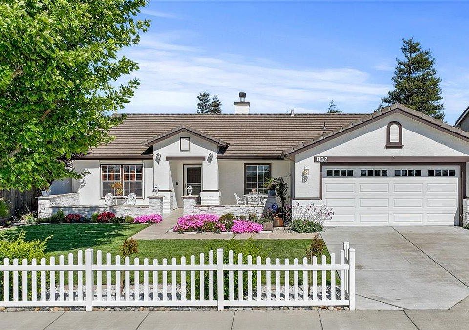 Fantastic new price!! If you have dreams of owning a beautiful single story home with a classic white picket fence, look no further! Beyond the lush front yard the custom porcelain tile walkway welcomes you to the beautiful lighted courtyard with stacked stone walls. This extra outdoor living space is the perfect place to enjoy the open and spacious views. Inside and out every inch is immaculate with Brazilian Cherry engineered hardwood flooring, newer granite counters and custom marble backsplash, tile, stainless steel appliances and quality well-maintained cabinets throughout. Double door den/office is bright and spacious and could be an additional bedroom. Bedrooms have freshly cleaned upgraded carpet/pad and primary bedroom has outdoor access. The backyard is a serene delight with beautiful lawn, two gazebos, custom tiled patios and walkways, stone extended planter and side yard shed. Look forward to harvest time with nectarine, persimmon, pomegranate, lemon and calamansi trees. Extras include newer HVAC system, security system, whole house water system + water softener, finished garage with epoxy floor and cabinets. Walk to the nearby neighborhood park, close to highly desirable Ripon schools and quaint shopping.