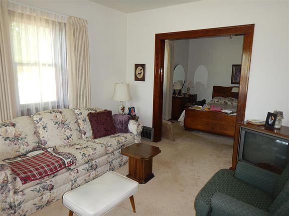 Cute well maintained home set back off the main road. It has nice shade trees and a large front porch to sit on. There is a detached 1 car garage and basement for storage. Updates include newer windows, updated electrical panel, vinyl siding and roof. There is maple hardwood floors under the living room & bedroom carpets. A nice size entry way when you first walk in. The kitchen has plenty of cabinets and room for an eat-in dining area. The living room is bright and sunny. There is a main floor bedroom and bathroom. 2 more bedrooms upstairs with walk in attic storage. It sits on half a lot so there is less lawn maintenance.