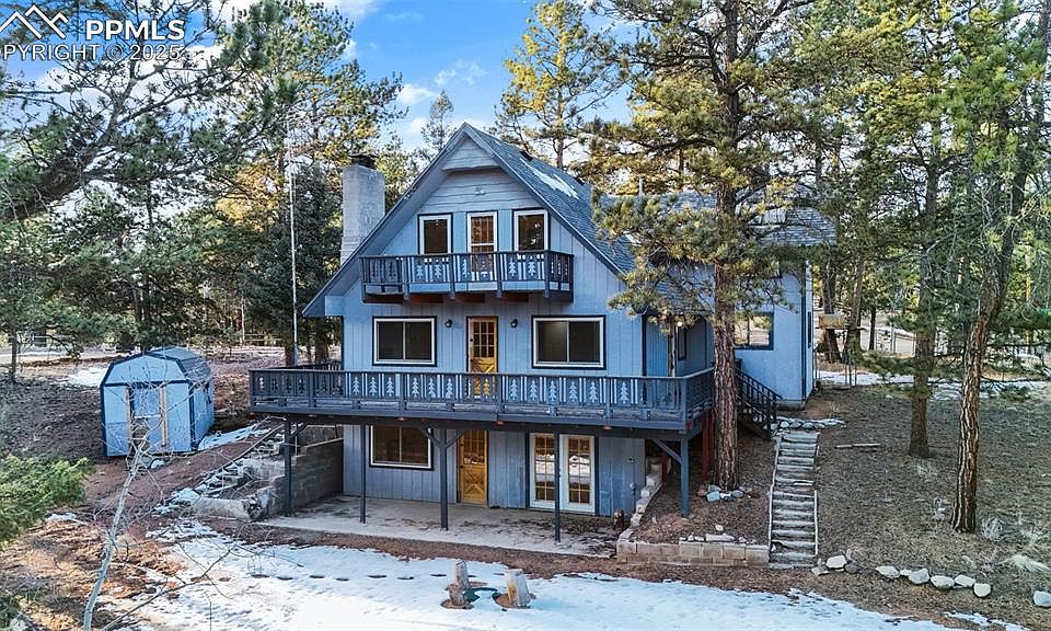 Set on a peaceful 1-acre lot in the Spring Valley community, this beautifully refreshed Divide home offers mountain living with comfort, space, and community amenities. The 1.5-story floor plan is thoughtfully designed for full-time living or a mountain getaway. The main level features one bedroom, a welcoming living area with a wood-burning fireplace, an updated kitchen, and refreshed finishes throughout. Recent improvements include new flooring, fresh interior paint, and updated windows (2023), creating a bright, move-in-ready interior. Upstairs, you’ll find two spacious bedrooms and a large bathroom, offering privacy and separation from the main living areas—ideal for guests or family. The partially finished basement provides a generous family room with a second wood-burning fireplace, an additional bathroom, office space, unfinished storage area and laundry, adding flexible living and recreation options. Surrounded by mature trees and mountain views, the property delivers the peaceful setting Divide is known for while still offering convenient access to Highway 24. The Spring Valley HOA enhances the neighborhood with community fishing ponds and shared outdoor amenities, adding to the mountain lifestyle appeal. There is also a fenced area in back and circular drive all nestled in a scenic community—where comfort meets Colorado living.