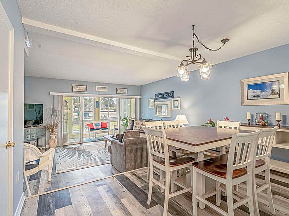 Nicely decorated Robbers Roost unit located in exclusive Tilghman Estates section of North Myrtle Beach. This townhome style condo is located east of Hwy 17 and close to the best beaches, shopping, restaurants and golf on the Strand. There are vinyl plank floors throughout the unit, the kitchen cabinets have been stripped and re-stained, quartz countertops were installed. There is a Carolina room overlooking the rear patio as well as newly sodded rear yard and new plants in 2021. Many improvements have been made to this unit and it has been meticulously cared for and never rented. This is one of the few units in Robbers Roost that you are guaranteed golf cart parking. This unit is being sold fully furnished.