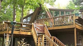 Premium Lake front lot on sought after Lake Aspen! This gorgeous completely renovated chalet has all of the bells and whistles including beautiful hardwood floors throughout kitchen, dining, and great room. Fully upgraded insulated windows throughout. Beautiful kitchen with custom cabinets and solid surface counter tops. There is tongue and grove cedar throughout the entire chalet. Extended great room with two sitting areas, gorgeous stone fireplace, custom built cabinets all wrapped in floor to ceiling windows. There are three bedrooms plus a child's sleeping nook and two full baths. Incredible extended deck with level lake access and private lakeside dock and beach area. Innsbrook is located near St. Louis and includes a restaurant, golf course, full event schedule, and more than 100 lakes. Owning an Innsbrook property means taking advantage of all the amenities the lake lifestyle offers: concerts, kids’ camps, stables, and all the swimming, boating, and fishing one can imagine.