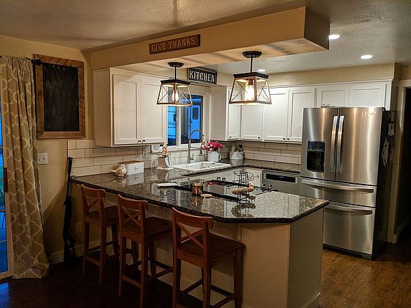 Beautifully Updated Home, new exterior paint and shutters, newer carpet and flooring, remodeled master bath, woodstove insert, Granite Counters, painted white Maple Cabs, Huge Family Room, Well Designed Utility Room & 1/2 Bath. Great Storage Throughout. Amazing Shop/Garage, Huge 1/3 Acre Lot In Wonderful Established Neighborhood. Newer Roof, Heat Pump.