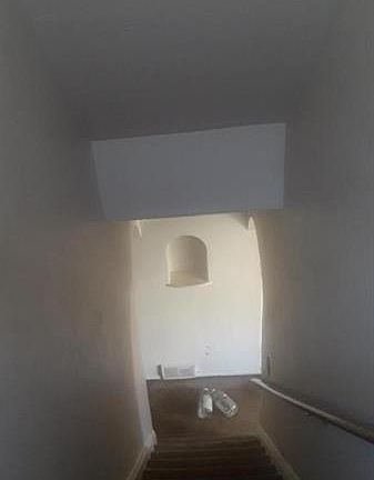 Great starter home with living room and eat in kitchen on the main floor. Two bedroom and one bath on the 2nd floor. Kitchen has plenty of cabinets. Quite street ,fenced in yard , small back porch and one off street parking. Sold in "AS IS" condition.