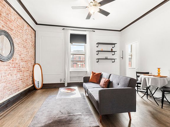 Cozy 1 Bedroom, 1 Bathroom condo with exposed brick and 10' ceilings on Washington St., in the heart of Hoboken. This east-facing, top/4th floor condo features a spacious living room with plenty of natural light. Refinished hardwood floors in 2022 and crown molding throughout. The kitchen is fully equipped with updated appliances, including a dishwasher and microwave, and a storage closet. Ceiling fans in the living room and bedroom for added circulation. Washer/dryer combo hook-up in unit. Great for the first-time home buyer. Low taxes and HOA. Bus to NYC and bus to the Hoboken PATH on the corner.