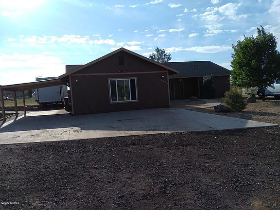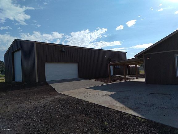2000sq ft 3bed2bath home with a (2400 sq ft) RV Pull Thru Garage, Large Island Kitchen with Custom Countertops. Master Suite with Fireplace, walkin Shower with custom tile, jaccuzi/jet tub, his & her sinks, Large walk in closet. Great View of the San Francisco Peaks. 2.5 Acres Quiet and Sucluded. Garage has 2-10'x14' Roll up doors and 7x16 standard 2 car garage door. Lot's of cabinets and shelves, 2nd floor above 2 car garage Door appx 200 ft.