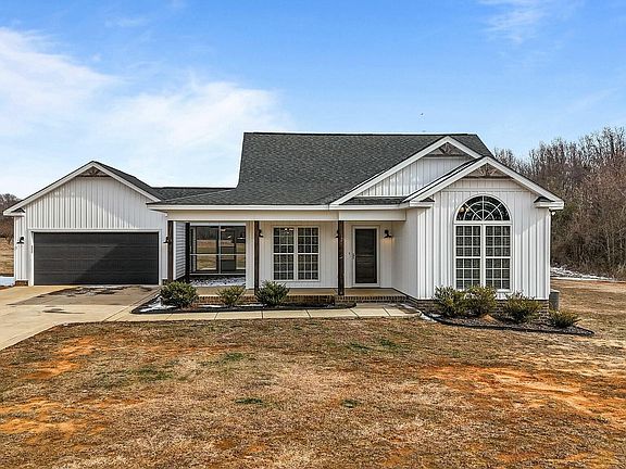 This charming farmhouse-style home sits on nearly 4 acres of picturesque land, offering plenty of space for outdoor activities, gardening, or simply enjoying nature. This home includes 3 spacious bedrooms and 2 well-appointed bathrooms. The open-concept living area features vaulted-ceilings and unique trim work throughout. The vaulted-ceilings in the primary suite make for an open atmosphere. If you've been looking for a home on acreage with no HOA, you have finally found it!